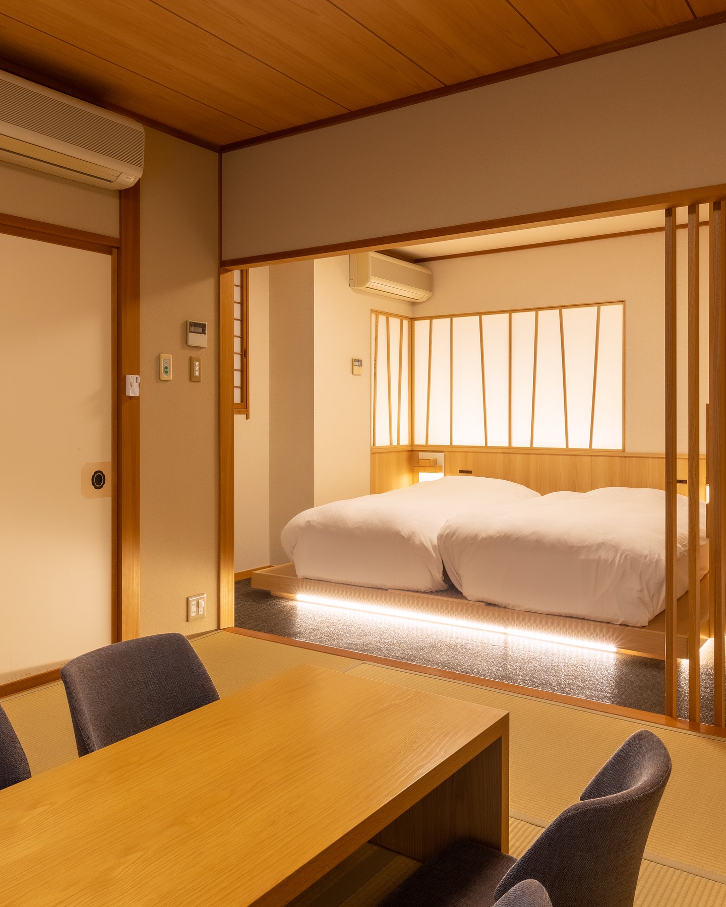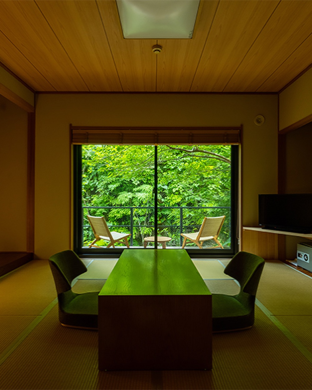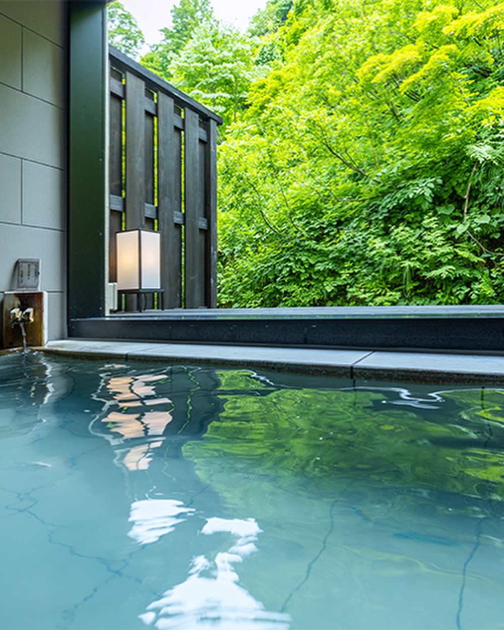 【憩】IKOI 57㎡ バス・トイレ(ウォシュレット)付き/1階 露天風呂 【ご利用人数】 1~5名様 【ベッド】 シングル(97×200cm)2台/布団3組 【その他】 禁煙ルーム/無料Wi-Fi #憩 #酒の宿玉城屋 #松之山温泉 #十日町 #新潟旅行 #温泉旅館 #フランス料理 #日本酒ペアリング #日本三大薬湯