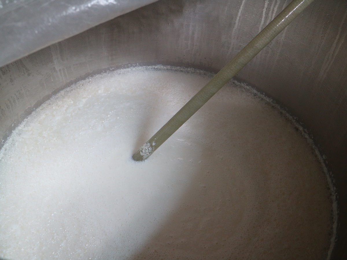 酵母を培養したもの。蒸米、麹、水、酵母によって仕込まれ、 この酵母が糖分をアルコールへと変えてくれます。元気にぼこぼこしてます。