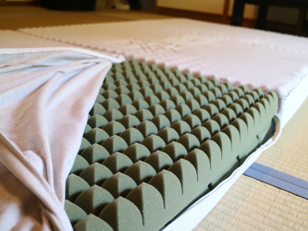 毎日眠る寝具としては体圧分散効果のより強い他のマットレスがいいかもしれないけど、旅館での1泊を過ごす上で大切な初日の寝心地。
