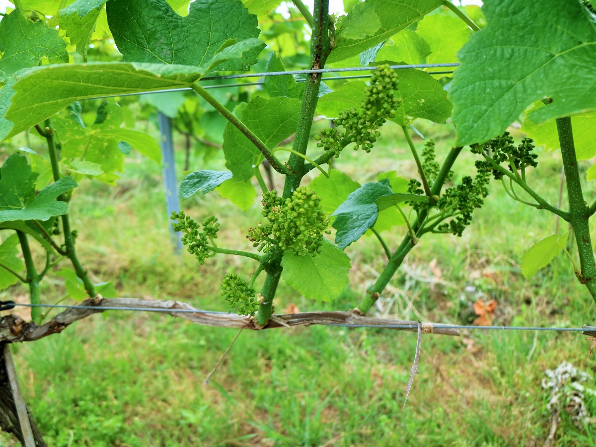 この日、たまたま開花したピノノワールのお花も発見♪