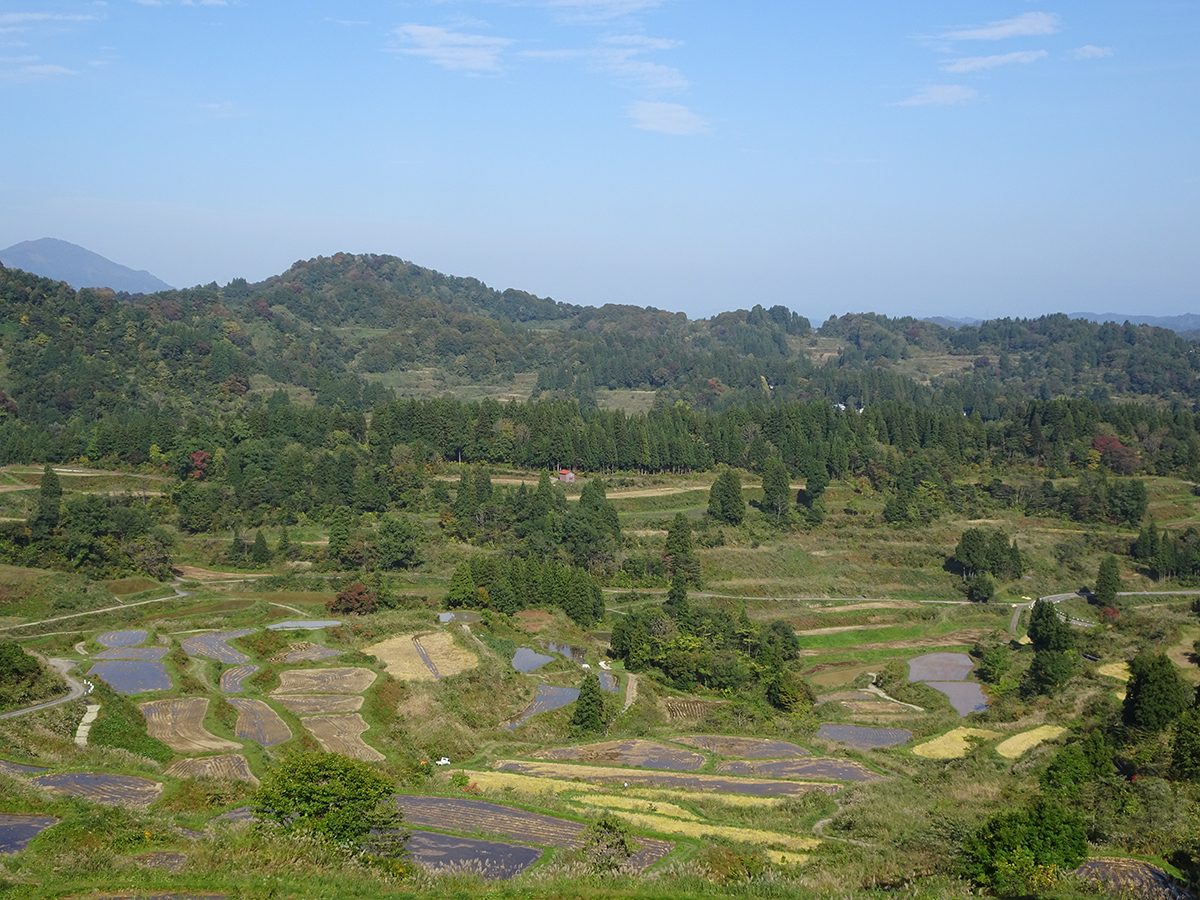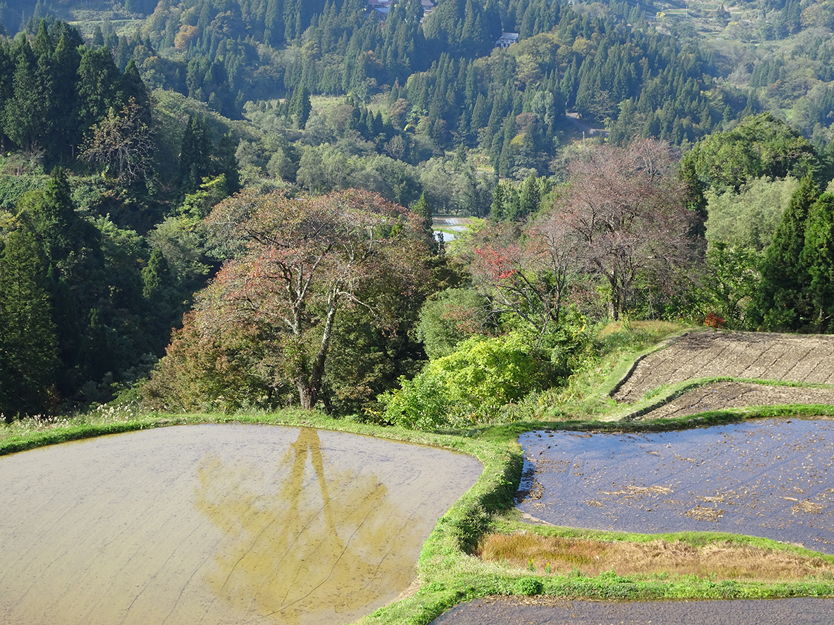 星峠の棚田稲刈りもほぼ終わり、水の張った田んぼも何枚か見られるようになりました。