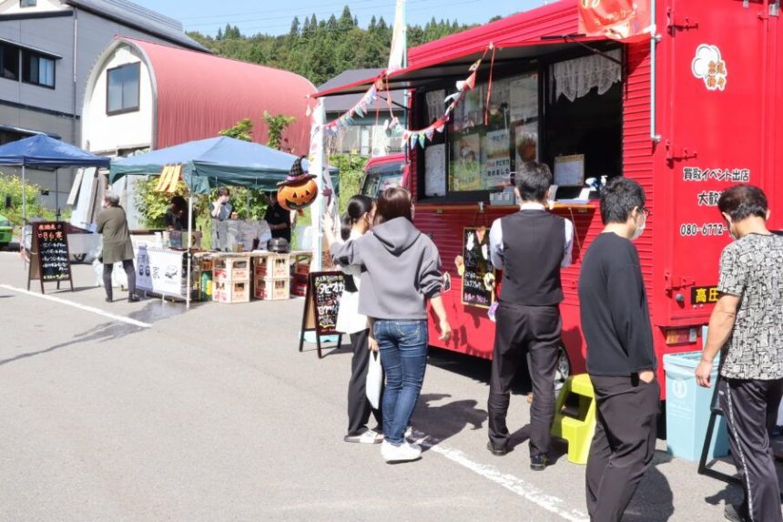 まつだいマルシェ軽トラ市では地元の農産加工品、特産品、手作り小物などの個性あふれるお店や飲食店や旬の野菜が並び多くの人で賑わいます。