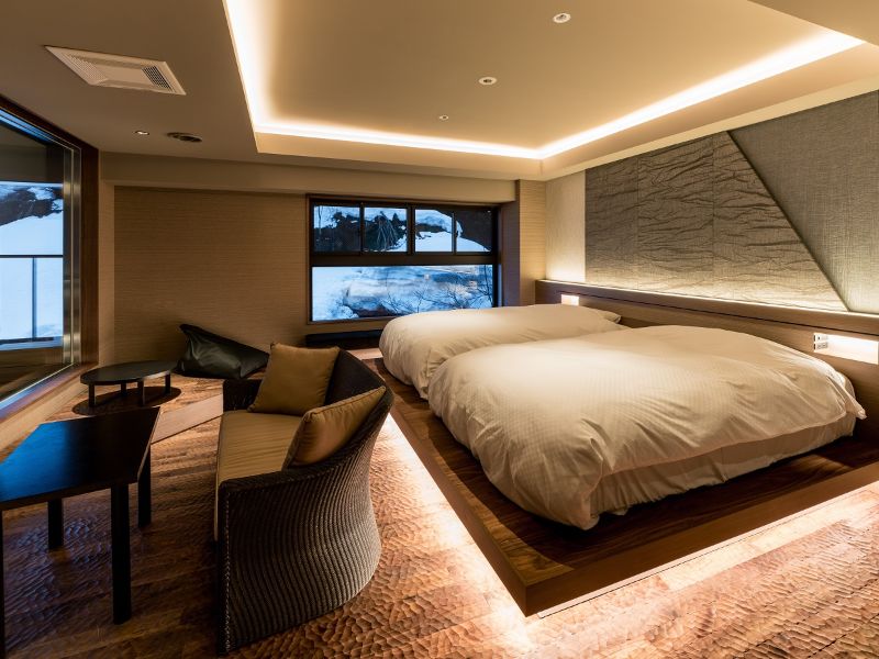 その6室すべてが、里山と川に面しているお部屋となっており、客室露天風呂、または内風呂からは、里山の風景や川の音を楽しむことができます。