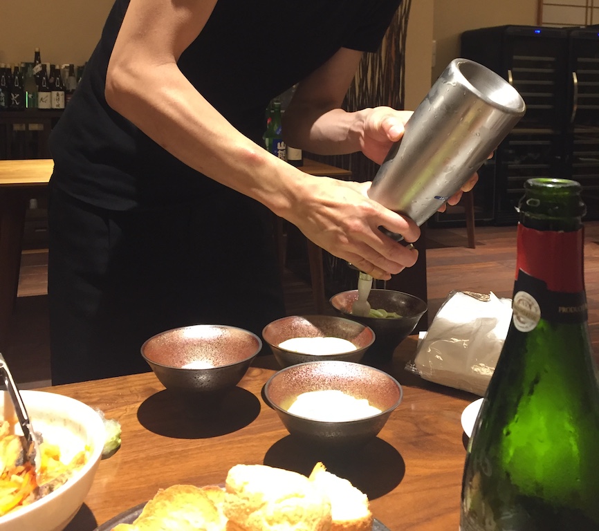 反省会や明日の予約を確認しつつ、ワインや日本酒の料理とのマリアージュも研究!!より良い空間を創り出すべく皆で頑張っております。