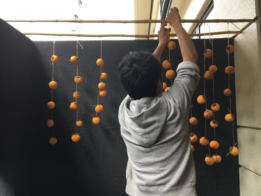 ベテランの仲居さん達に交じり、色々と教えてもらいながらの干し柿作り♪