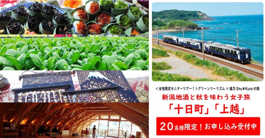 ⇒1泊2日<女性限定モニターツアー>グリーンツーリズムxお酒を楽しむリゾート列車「越乃Shu*Kura」の旅