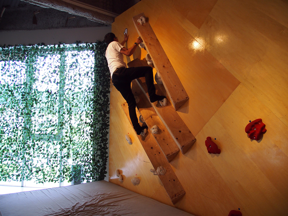 ボルダリングやハイパージャンパーなど体験できる作品が展示中です。